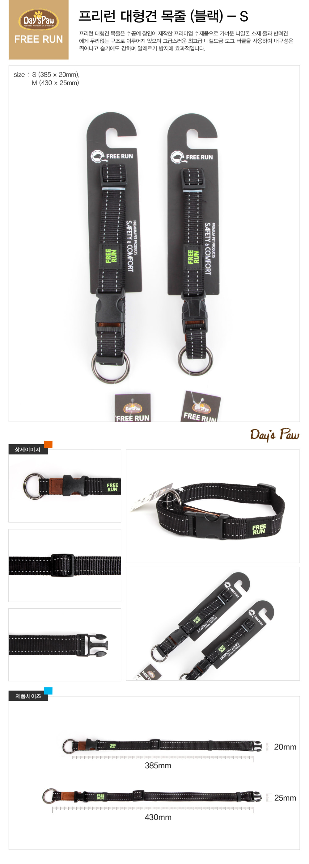 프리런 대형견 목줄 S(블랙)