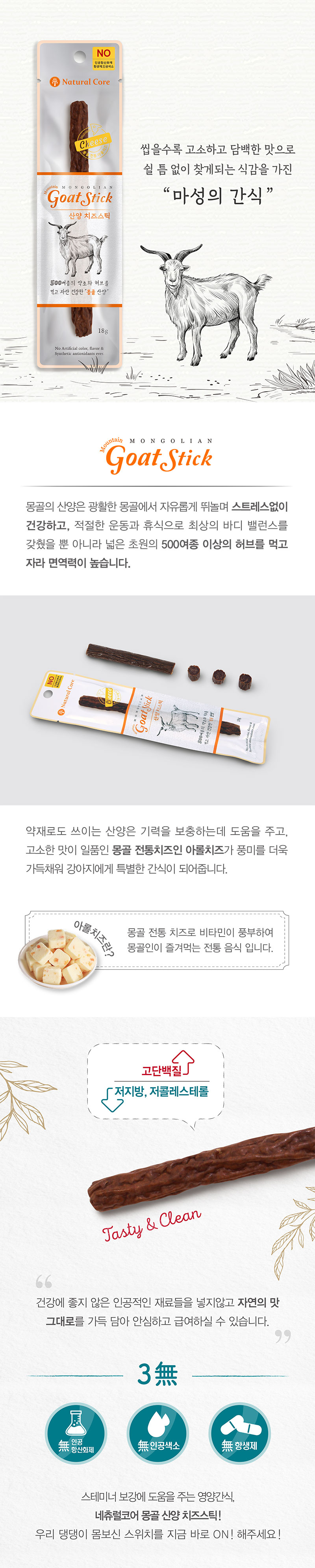 [사업자회원]네츄럴코어 몽골 산양 치즈스틱 3p